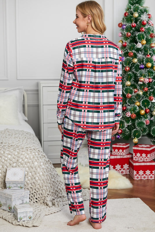 Red Shirt Collar Plaid Button Down Christmas Pajama Set